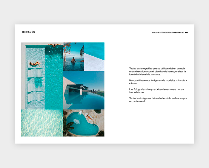Este apartado es indispensable para todo negocio que suele utilizar las elementos como fotografías, iconos o ilustraciones como un recurso en su comunicación. Concreta el estilo de imágenes que se pueden usar y pone ejemplos que encajan con el tono de la marca. Define también los tamaños y el uso correcto e incorrecto de: