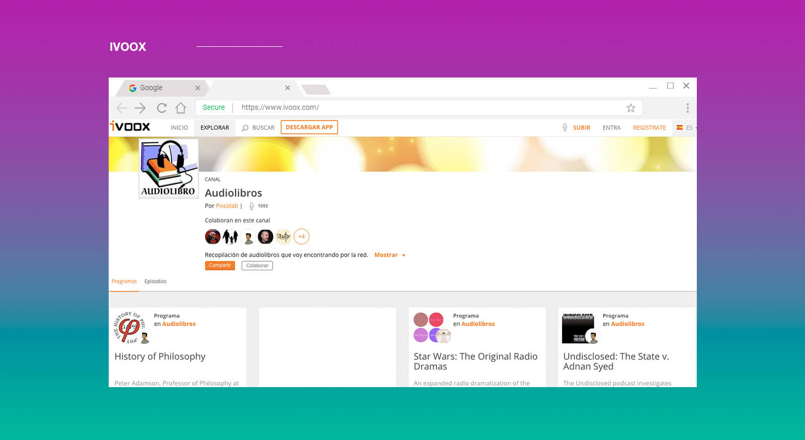 Se autodenomina “portal de audiolibros dramatizados en todos los idiomas y géneros”.