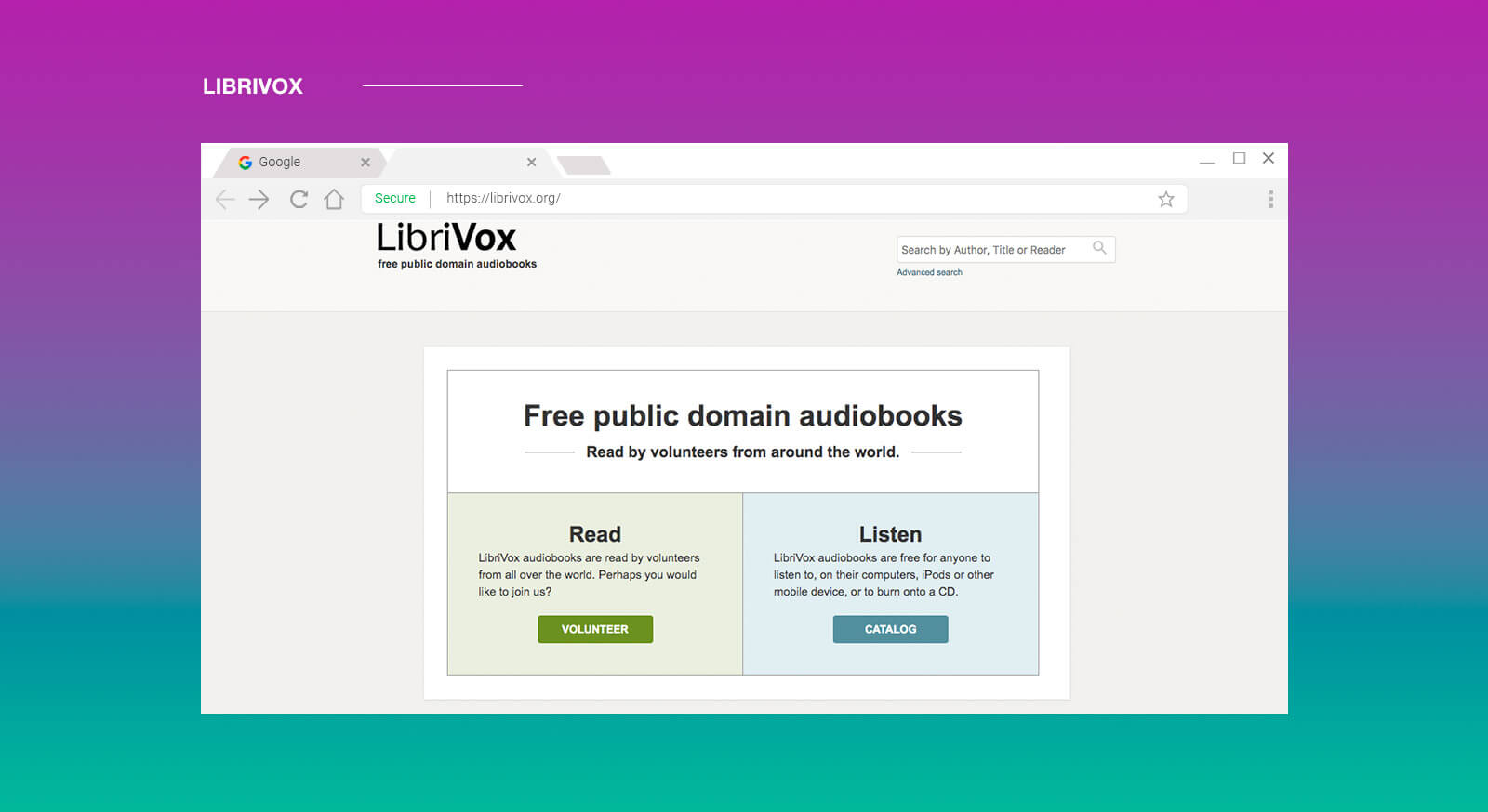 Es una biblioteca digital en línea, pública y gratuita. El 90% de los libros que tiene están en inglés y, aunque el propio LibriVox produce sus propios audiolibros en hasta 36 lenguas diferentes. La mayoría de las narraciones son grabaciones de los propios usuarios, algunos por desgracia no tan profesionales.