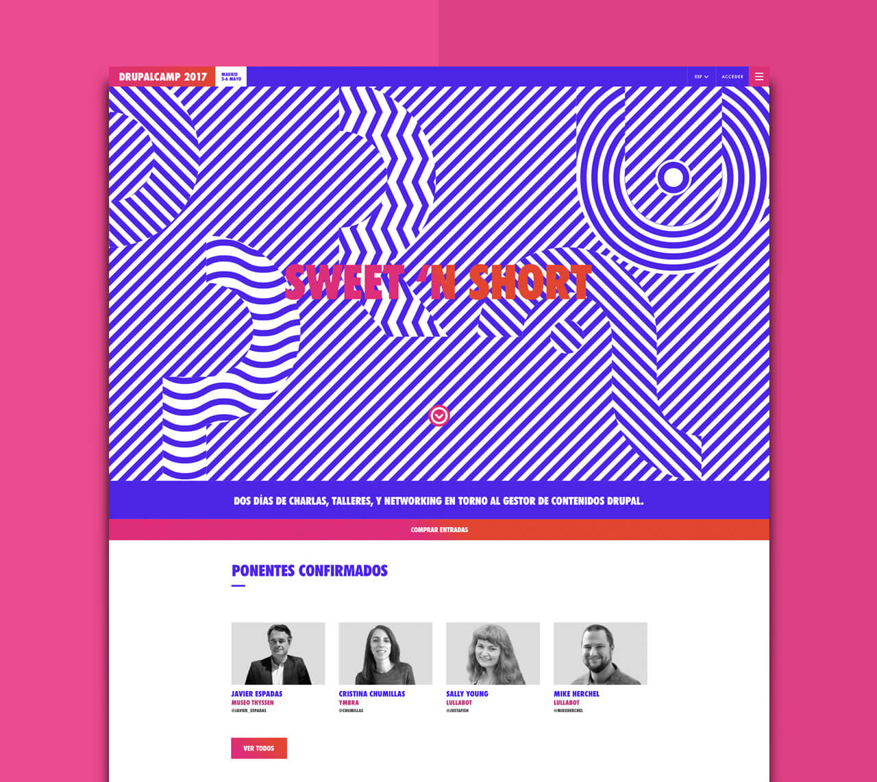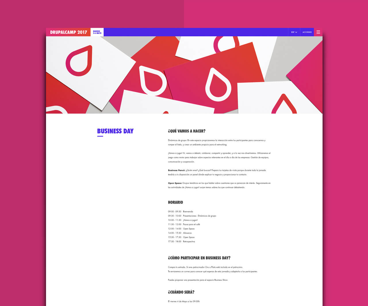 Como miembros de la Asociación Española de Drupal nos ofrecimos a crear toda la identidad visual de la conferencia con el objetivo de comunicar el carácter innovador, creativo y tecnológico de la marca.