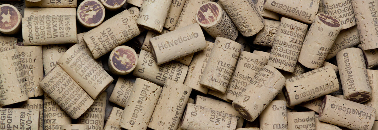 Cuidamos al máximo cada detalle, imprimimos toda la tipografía Helvetica alrededor del tapón de corcho de la botella y realizamos una serie de 150 botellas lacradas con un sello de Helvetica Wine.