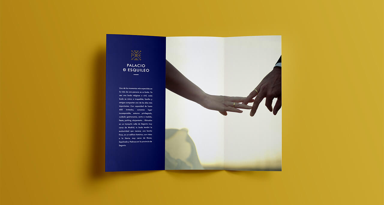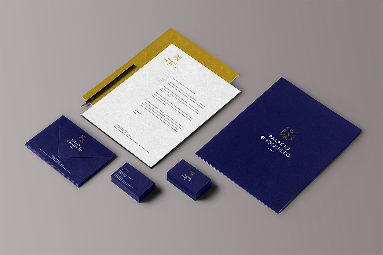 Para los colores elegimos dos colores complementarios, el dorado y el azul oscuro, que proporcionan esa sensación de exclusividad y elegancia que la marca pretende transmitir dentro del sector.