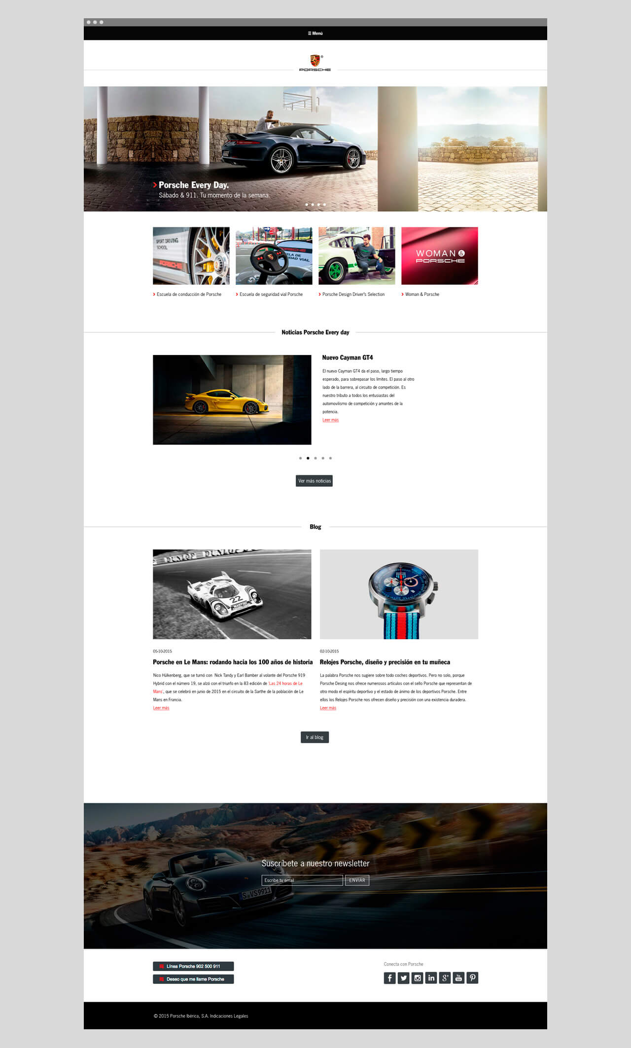 Diseñamos y gestionamos distintos sitios web para diferentes campañas y departamentos de Porsche, generando noticias, artículos y todo tipo de contenido. Desarrollamos el magazine interactivo Porsche News, disponible en Google Play y en la App Store de Apple; así como locuciones para la creación de audiobooks.